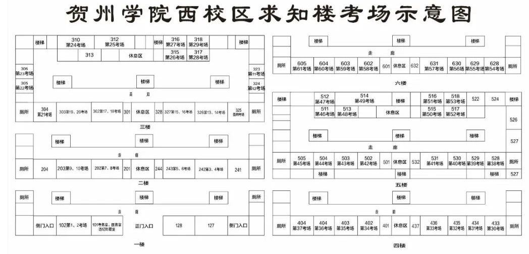 公交車參考:途經(jīng)賀州學院西校區(qū)(學院西區(qū)站)的公交車有6路、18路、K1路。進入校園后步行到求知樓大約需20分鐘,請考生提前安排好時間進入考點。