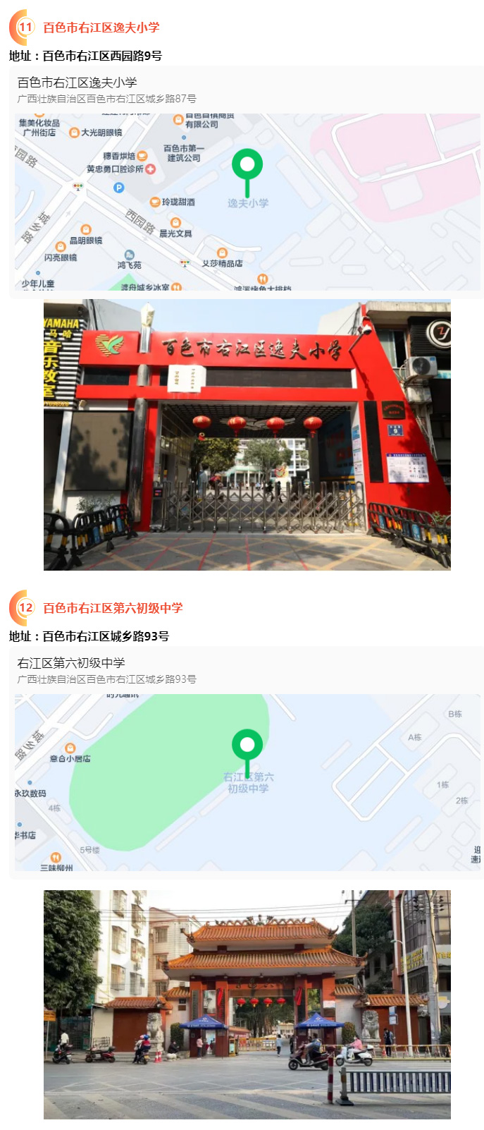2.請(qǐng)?zhí)崆笆煜た键c(diǎn)地址,做好路線、住宿的安排。本次考試參考人數(shù)較多,考點(diǎn)分布分散,建議考生考前實(shí)地察看考點(diǎn),確認(rèn)考點(diǎn)入口位置,防止走錯(cuò)考點(diǎn)。請(qǐng)充分考慮考點(diǎn)周邊交通通行情況和停車場(chǎng)地容量,合理安排出行方式,預(yù)留充足時(shí)間,確保考試當(dāng)天按時(shí)到達(dá)。另外,考試期間百色市及各考點(diǎn)學(xué)校周邊的住宿比較緊張,請(qǐng)?zhí)崆邦A(yù)定。