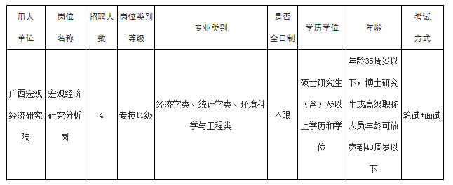 本次公開招聘實名編制工作人員4名,要求普通高等學(xué)校畢業(yè),經(jīng)濟(jì)學(xué)類、統(tǒng)計學(xué)類和環(huán)境科學(xué)與工程類專業(yè),具有碩士研究生(含)及以上學(xué)歷和學(xué)位,年齡35周歲以下(年齡截止報名首日),博士研究生或高級職稱人員年齡可放寬到40周歲以下(年齡截止報名首日)。