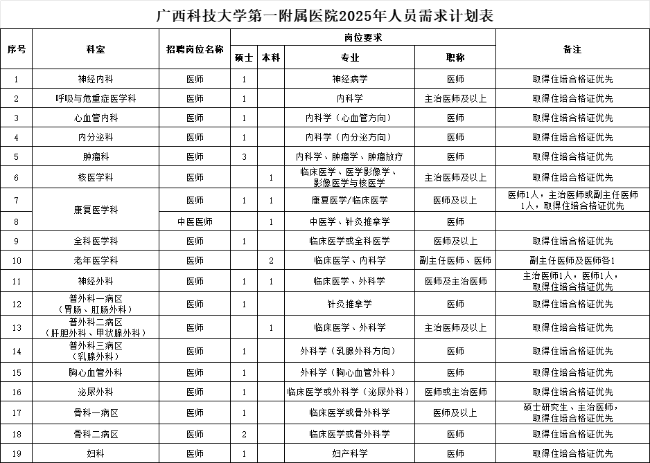2025年廣西科技大學第一附屬醫(yī)院招聘56人