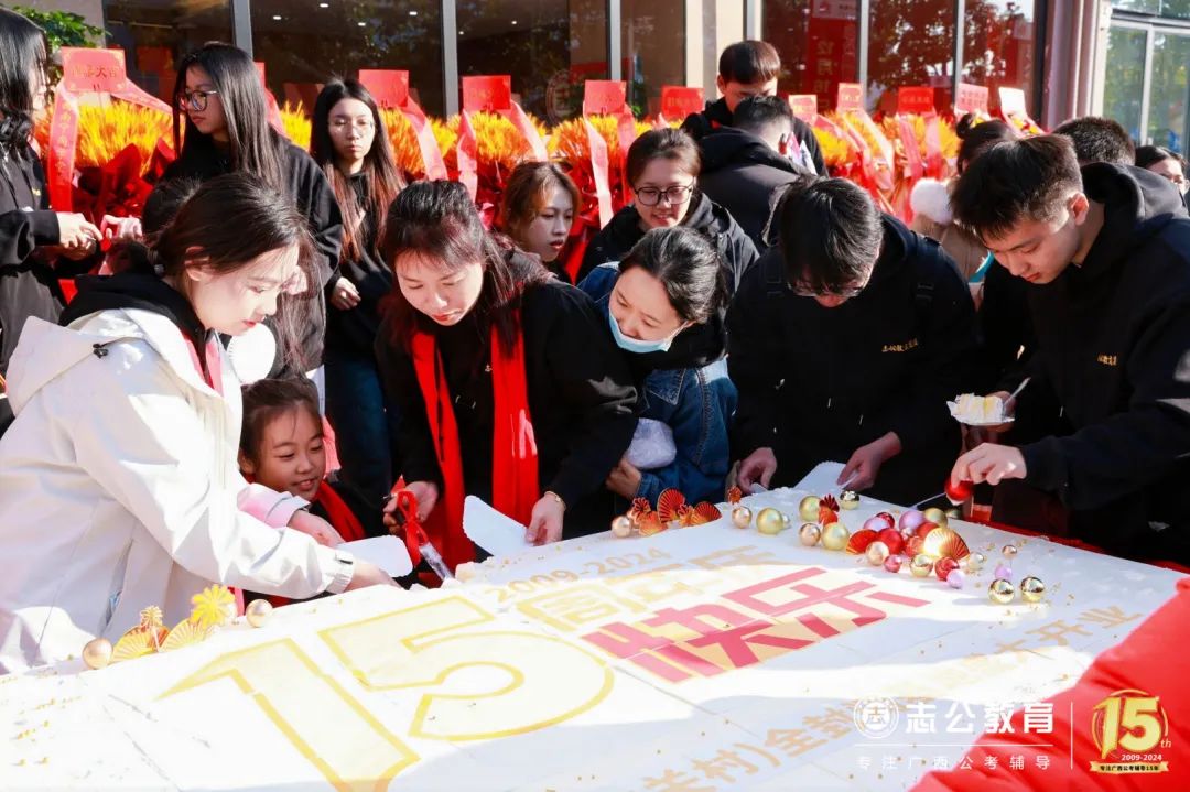 這個(gè)蛋糕不僅象征著志公走過的15個(gè)輝煌歲月,更代表了志公未來(lái)更加美好的明天。在場(chǎng)的所有員工都分享了這份喜悅和甜蜜,共同祝愿志公教育越來(lái)越好。