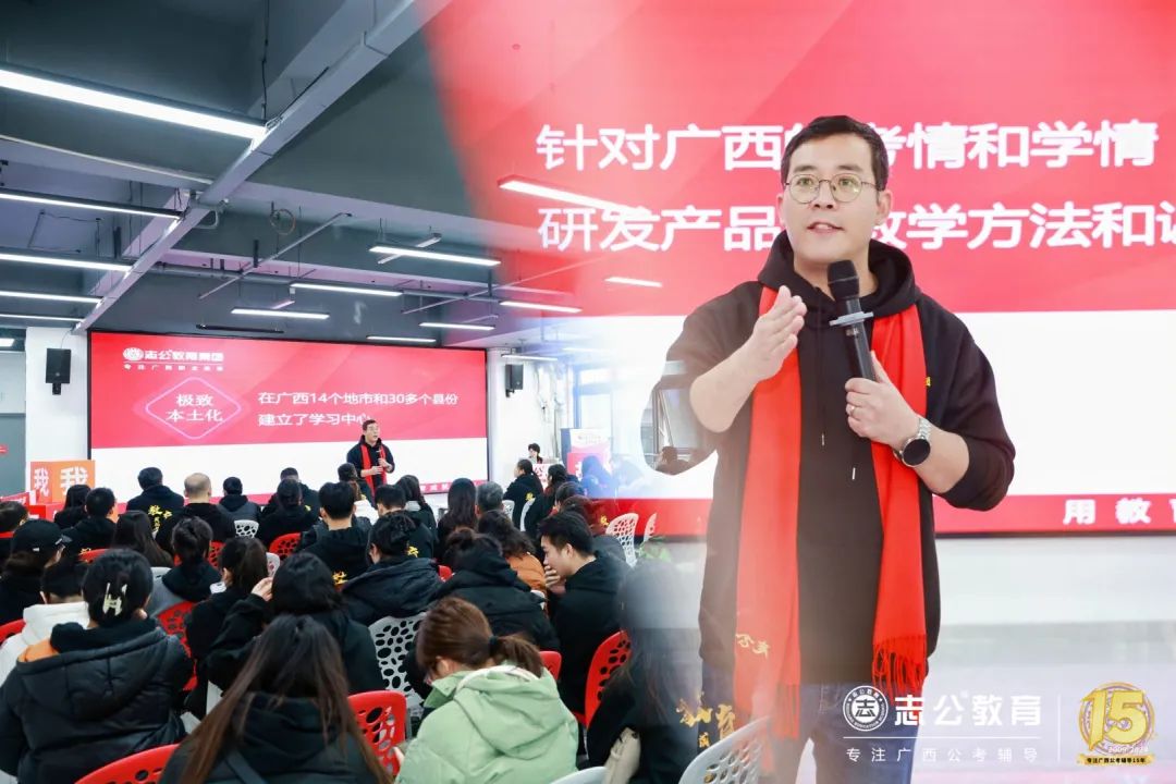 第一是極致本土化,董事長(zhǎng)李勇表示這是志公教育集團(tuán)安身立業(yè)的根本,他表示這要求對(duì)廣西公職考試響應(yīng)速度要快,針對(duì)廣西的考情和學(xué)情,研發(fā)產(chǎn)品教學(xué)方法和課程資料,這是對(duì)教研院的考驗(yàn),明確表示未來(lái)要把錢投在學(xué)員的服務(wù)上、老師的數(shù)量、學(xué)習(xí)班主任。志公教育現(xiàn)在有志公教育(保稅區(qū))全封閉基地,志公教育(中關(guān)村)全封閉基地,未來(lái)希望在桂林,柳州,百色等地也建立基地,讓志公教育在八桂大地生根,實(shí)現(xiàn)各美其美,美美與共。