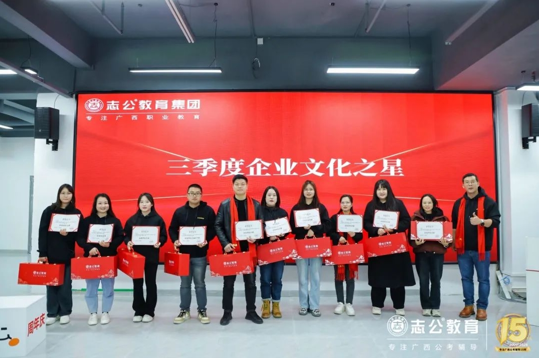 一直以來(lái),志公教育都秉承著“12條企業(yè)文化核心價(jià)值觀”,包括客戶原則——以學(xué)員為中心”、“管理原則——人人都是經(jīng)營(yíng)者”等12項(xiàng)原則,扎根廣西本土公考,全力服務(wù)每一位志公學(xué)員。在董事長(zhǎng)李勇的正確領(lǐng)導(dǎo)下,在廣大學(xué)員的支持下,在全體員工的共同努力下,志公教育從無(wú)到有,從小到大,不斷夯實(shí)發(fā)展基礎(chǔ),贏得了客戶的信賴和品牌形象。全體志公人將堅(jiān)定目標(biāo)齊奮斗、凝心聚力再出發(fā),為志公高質(zhì)量發(fā)展再立新功。