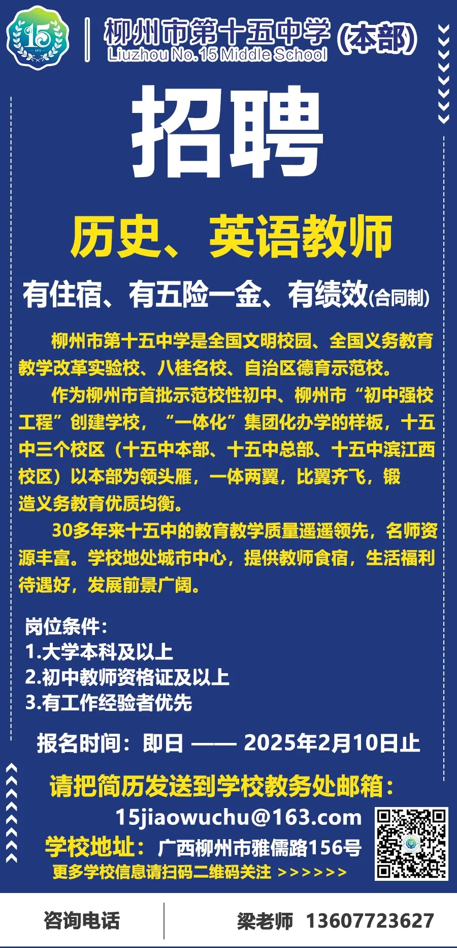 2025年柳州市第十五中學本部誠聘英才