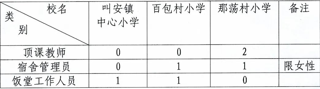 因工作需要,上思縣叫安鎮(zhèn)中心小學現(xiàn)面向社會公開招聘頂課教師、安全協(xié)管員和飯?zhí)霉ぷ魅藛T等。招聘相關事項如下: