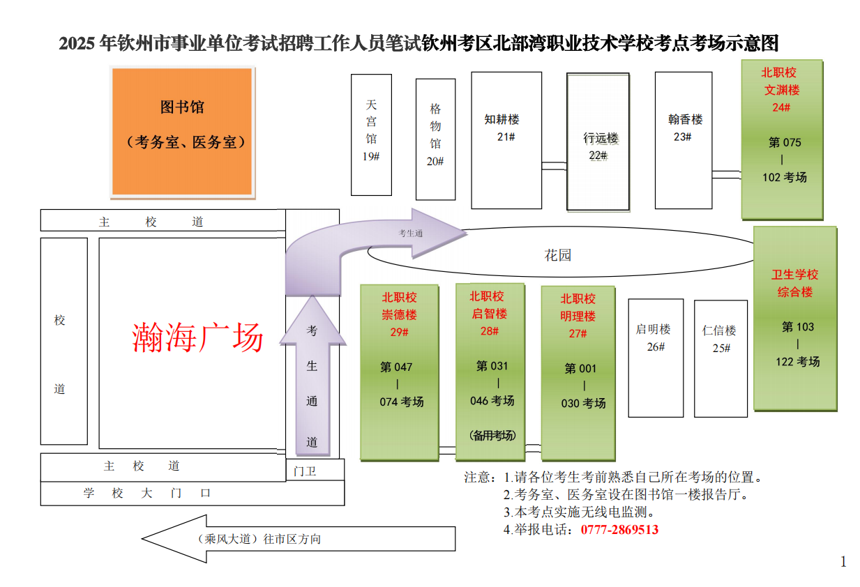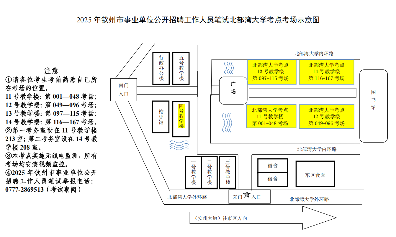(二)請(qǐng)考生按照本人準(zhǔn)考證上的考點(diǎn)學(xué)校,提前了解學(xué)校所在位置,特別注意不要混淆北部灣大學(xué)考點(diǎn)與北部灣職業(yè)技術(shù)學(xué)校考點(diǎn)。部分考點(diǎn)學(xué)校離市區(qū)有一定距離,請(qǐng)關(guān)注當(dāng)天交通情況和天氣情況,充分考慮路途時(shí)間和天氣因素影響,提前謀劃出行時(shí)間、路線(xiàn)和交通工具,建議提前60分鐘到達(dá)考點(diǎn),以免影響正常入場(chǎng)參加考試。