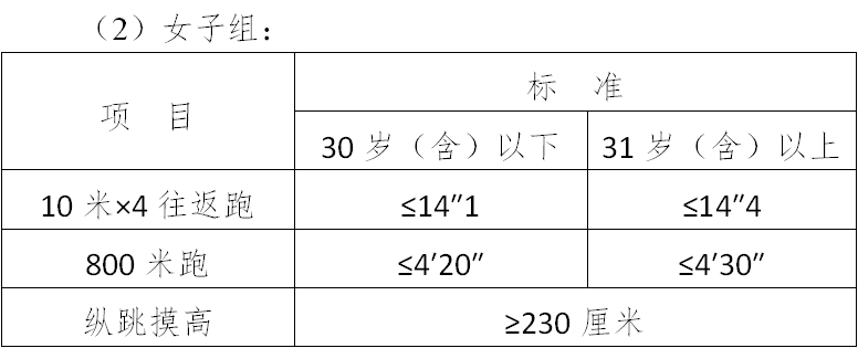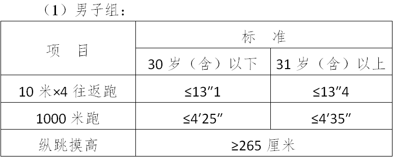 (三)面試體能測試三項(xiàng)全部達(dá)標(biāo)的,視為合格
