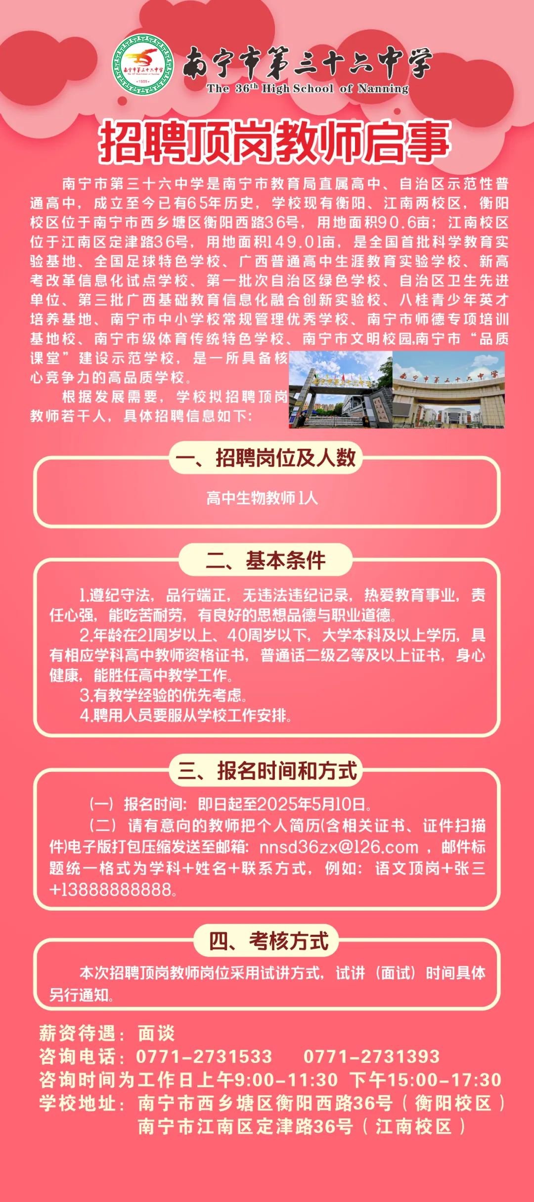 2025年南寧市第三十六中學招聘頂崗教師啟事
