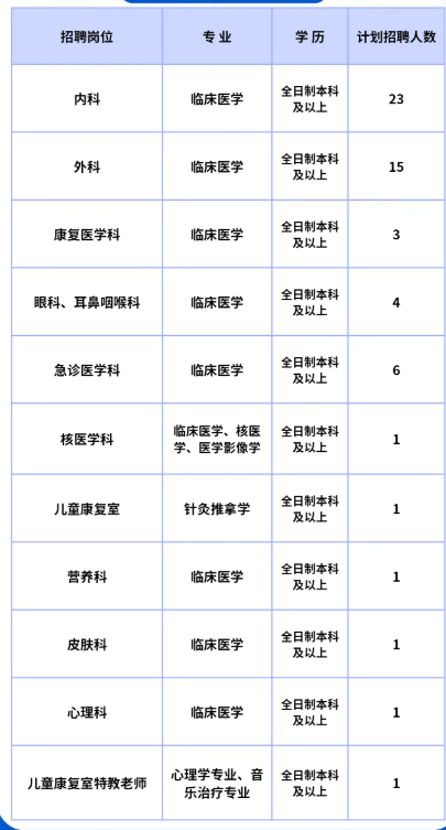 (三)急診醫(yī)學(xué)科、核醫(yī)學(xué)科、眼科、耳鼻咽喉科、康復(fù)醫(yī)學(xué)科等急需緊缺崗位的應(yīng)屆規(guī)培畢業(yè)生經(jīng)一個(gè)月試用期滿,考核合格者,與我院簽訂五年及以上勞動(dòng)合同的醫(yī)院可給予10萬(wàn)元獎(jiǎng)勵(lì)并享受同級(jí)別的待遇。