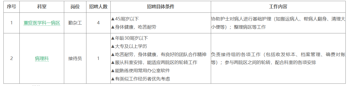 因醫(yī)院工作需要,現(xiàn)面向社會公開招聘5名普通合同工。現(xiàn)就有關(guān)事項公告如下: