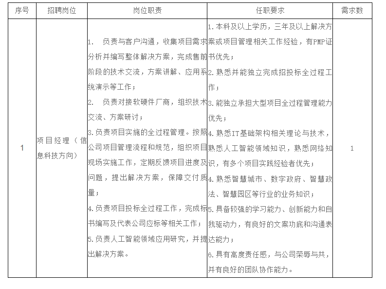 百色數(shù)字科技信息有限公司是中國—東盟信息港股份有限公司的控制子公司,是經(jīng)百色市國資委批準(zhǔn)成立的數(shù)字科技公司,定位為百色市重要的數(shù)字經(jīng)濟(jì)企業(yè),公司立足百色,面向全市,常駐辦公地址在百色市政務(wù)服務(wù)中心三樓。公司主營業(yè)務(wù)涵蓋產(chǎn)業(yè)互聯(lián)網(wǎng)、政企數(shù)字化和信創(chuàng)安全服務(wù)三大領(lǐng)域,根據(jù)公司發(fā)展需要,現(xiàn)面向社會(huì)公開招聘項(xiàng)目經(jīng)理崗位人員,具體公告如下: