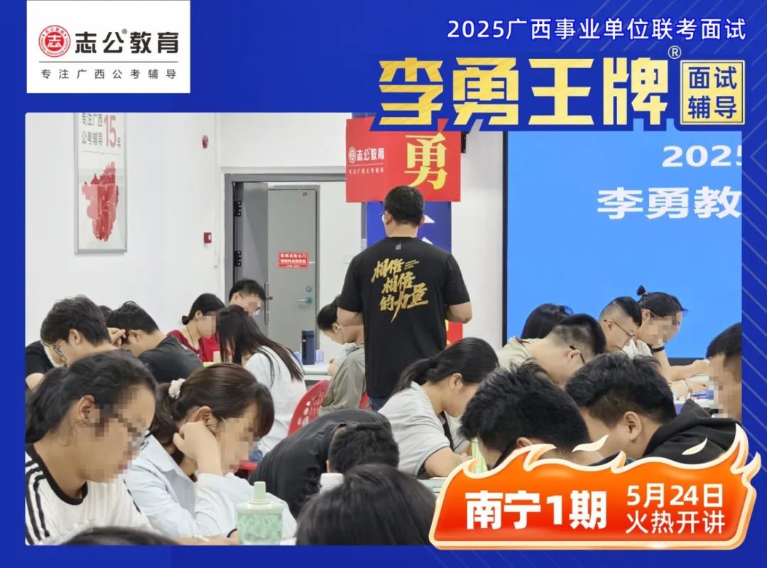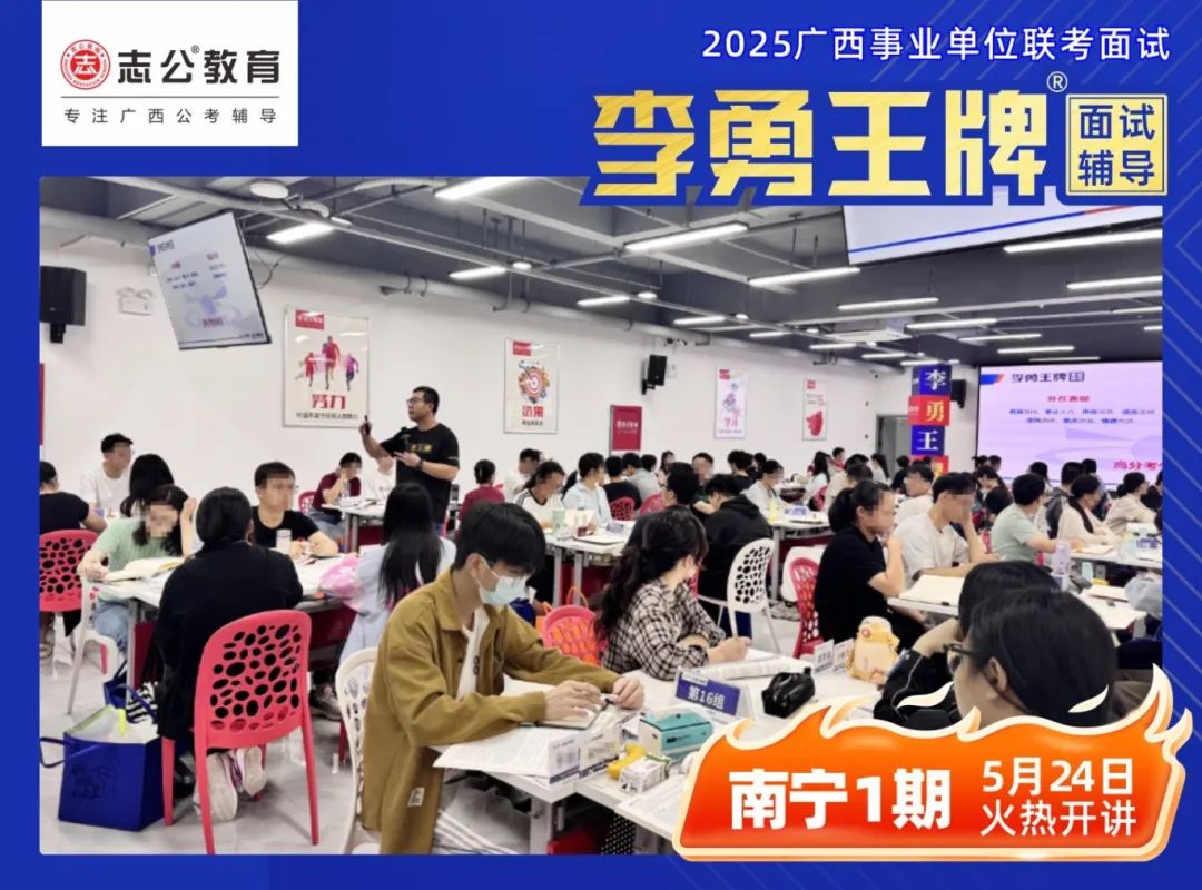 繼志公教育&李勇王牌®班教研室5月17日發(fā)布修改招生規(guī)則的通知后,各位未來“橘”長們,翹首以盼的時刻終于來啦!5月24日,志公教育李勇王牌®班——改革后的首個開班,在南寧火熱啟幕!現(xiàn)場學(xué)習(xí)氣氛爆棚,李勇老師與學(xué)員高頻互動,學(xué)員們直呼 “學(xué)到停不下來”!這不僅是一場面試特訓(xùn),更是一次思維與能力的雙重蛻變!