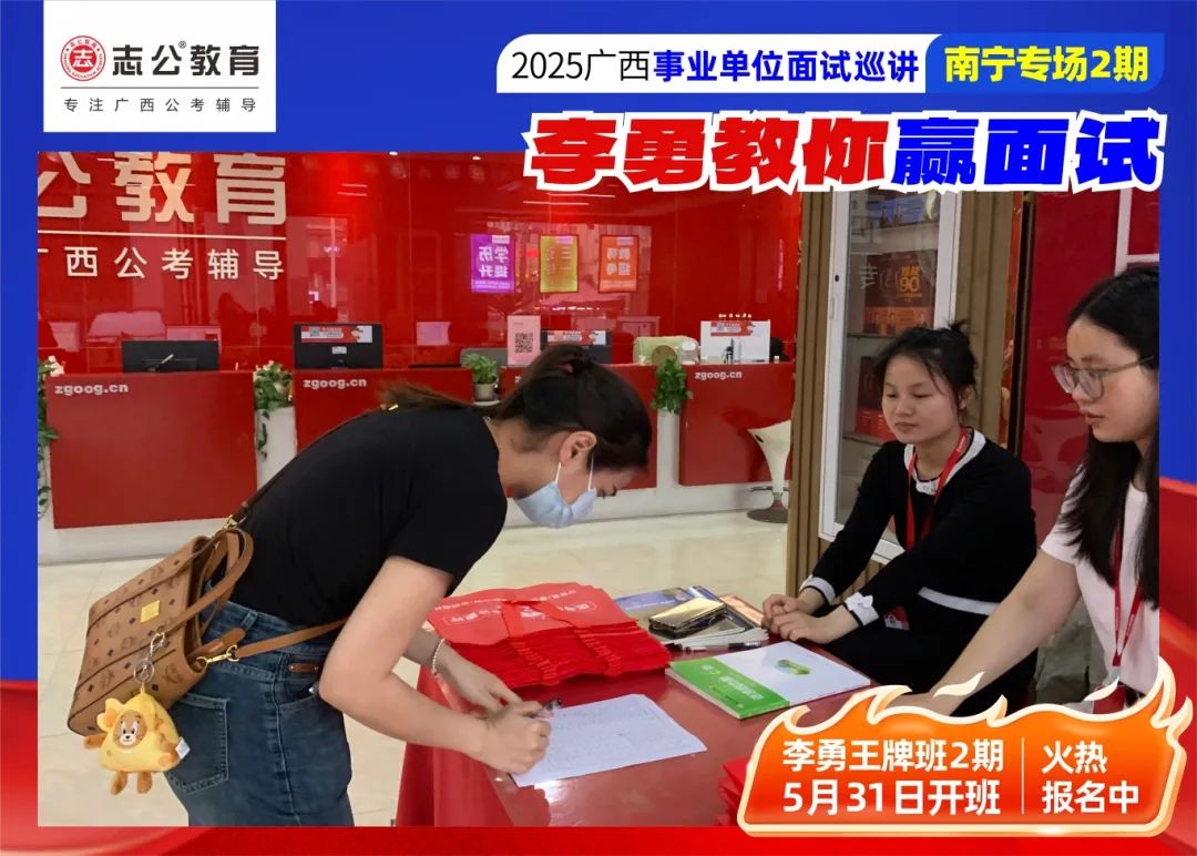 隨著2025廣西事業(yè)單位——李勇教你贏面試【南寧專場(chǎng)2期】線下巡講落幕,這場(chǎng)"面試攻堅(jiān)戰(zhàn)",不僅點(diǎn)燃了備考熱情,更讓志公教育"幫助人才實(shí)現(xiàn)更高質(zhì)量的就業(yè)"的使命,在八桂大地結(jié)出更多碩果。