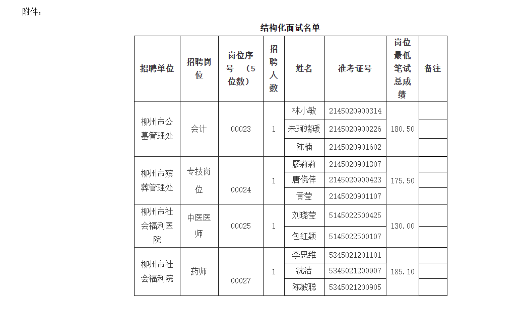 (三)面試當(dāng)天全部考試結(jié)束后,考生面試成績(jī)?cè)谑忻裾?2樓公示欄公示,并在廣西柳州市民政局網(wǎng)站(http://mzj.liuzhou.gov.cn/)上公布,請(qǐng)考生自行查閱。