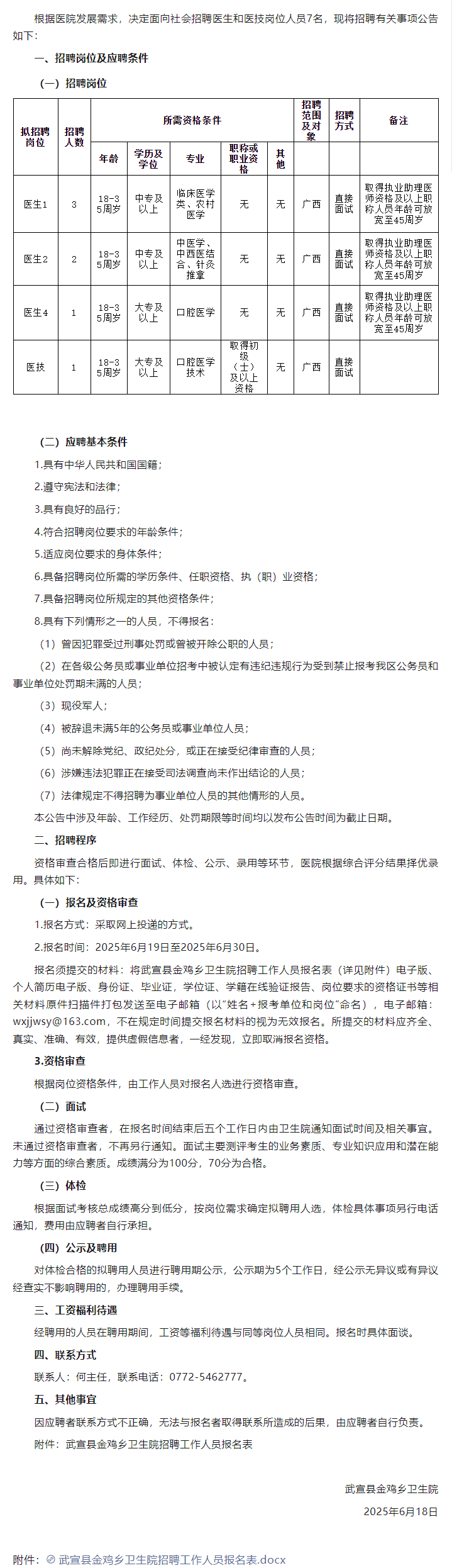 2025年武宣縣金雞鄉(xiāng)衛(wèi)生院公開(kāi)招聘編外聘用人員7人