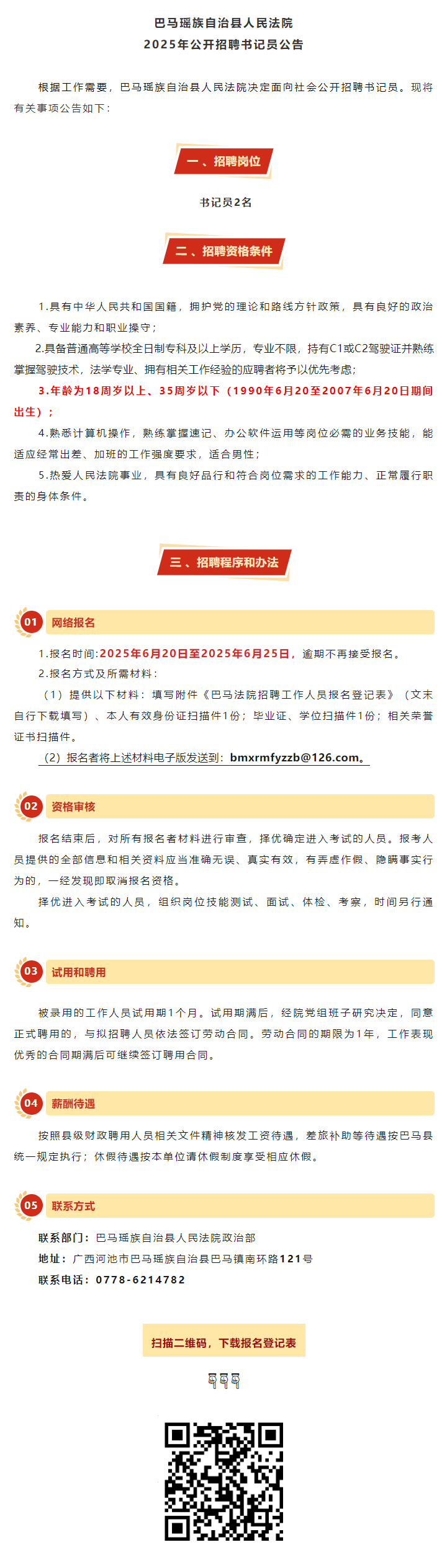2025年巴馬瑤族自治縣人民法院公開招聘書記員2人