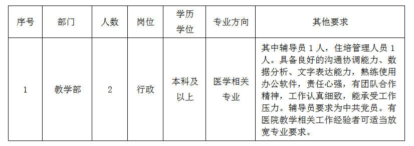 根據(jù)醫(yī)院的發(fā)展需求,現(xiàn)公開(kāi)招聘編外工作人員2名,具體要求如下: