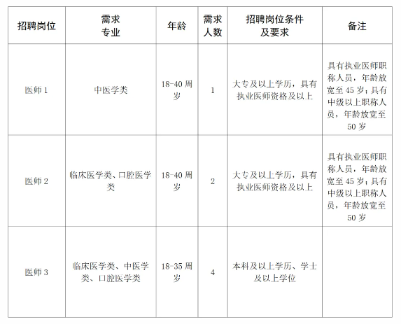 根據(jù)醫(yī)院發(fā)展需求,歡迎符合我院臨床醫(yī)學(xué)專業(yè)的專家前來(lái)應(yīng)聘從事臨床醫(yī)療工作,具有中級(jí)及以上醫(yī)師資格職稱,待遇根據(jù)相關(guān)政策規(guī)定給予。