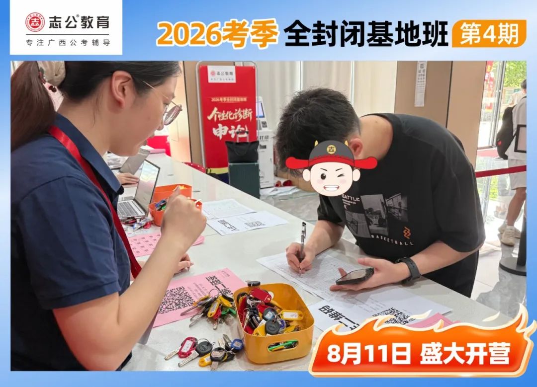 陽光明媚的一天,適合學(xué)習(xí),早上10點,志公教育(中關(guān)村)全封閉基地的簽到區(qū)已經(jīng)布置妥當(dāng),志公的班主任們早早到位,迎接每一位學(xué)員的到來。學(xué)員們滿懷期待,早早來到基地,為即將到來的學(xué)習(xí)之旅做好準(zhǔn)備。簽到臺前,大家有序排隊,學(xué)員們依次領(lǐng)取到宿舍鑰匙、水卡等。班主任們細(xì)心核對信息,發(fā)放學(xué)員證和學(xué)習(xí)資料,確保每一位學(xué)員都能順利開啟接下來的學(xué)習(xí)生活。