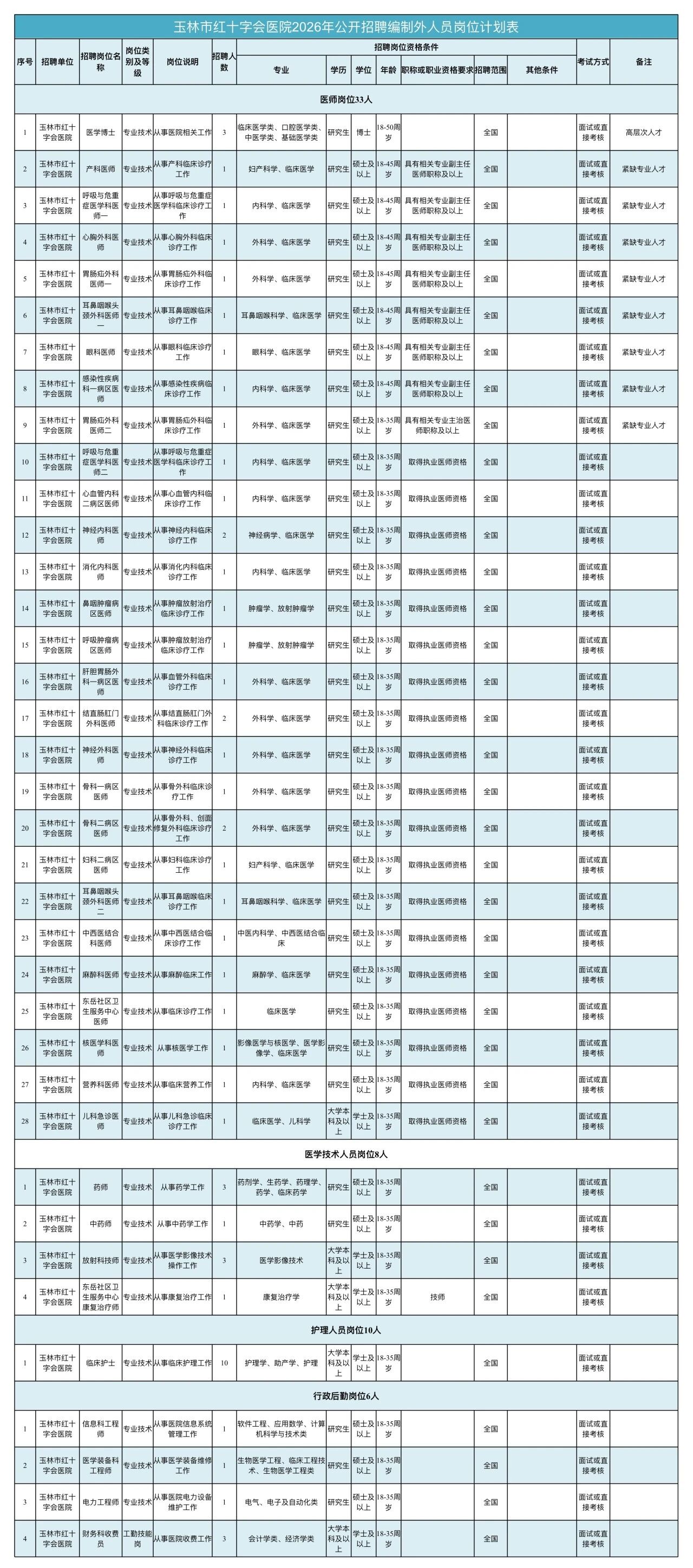 1.臨床醫(yī)技崗位:普通高校本科及以上學(xué)歷,專業(yè)與執(zhí)業(yè)類別相符,年齡35周歲以下;博士或中級以上職稱者條件放寬;