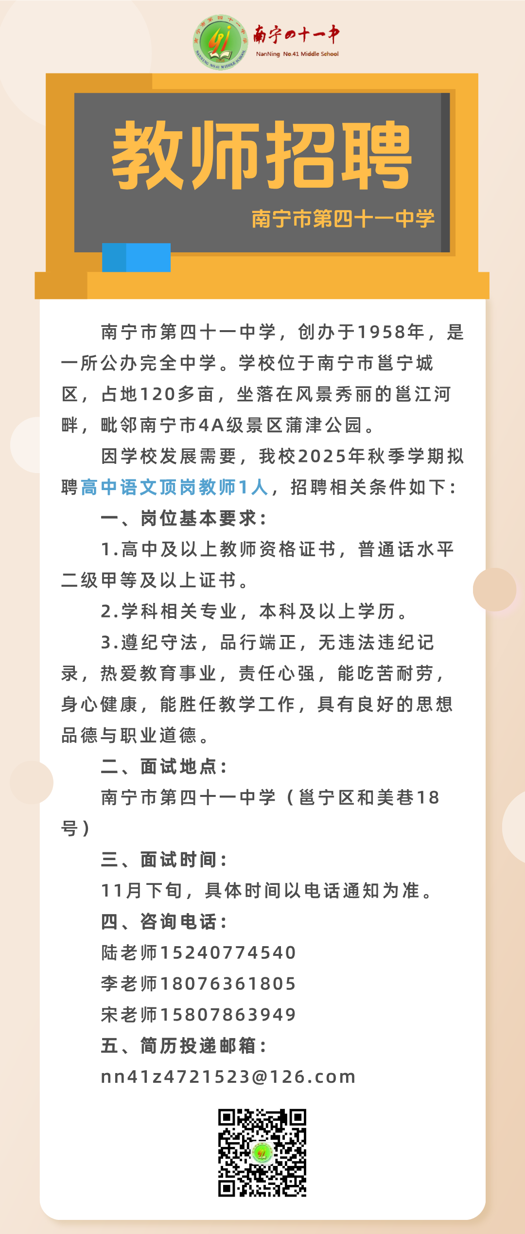 2025年秋季學(xué)期南寧市第四十一中學(xué)關(guān)于公開(kāi)招聘頂崗教師的啟事