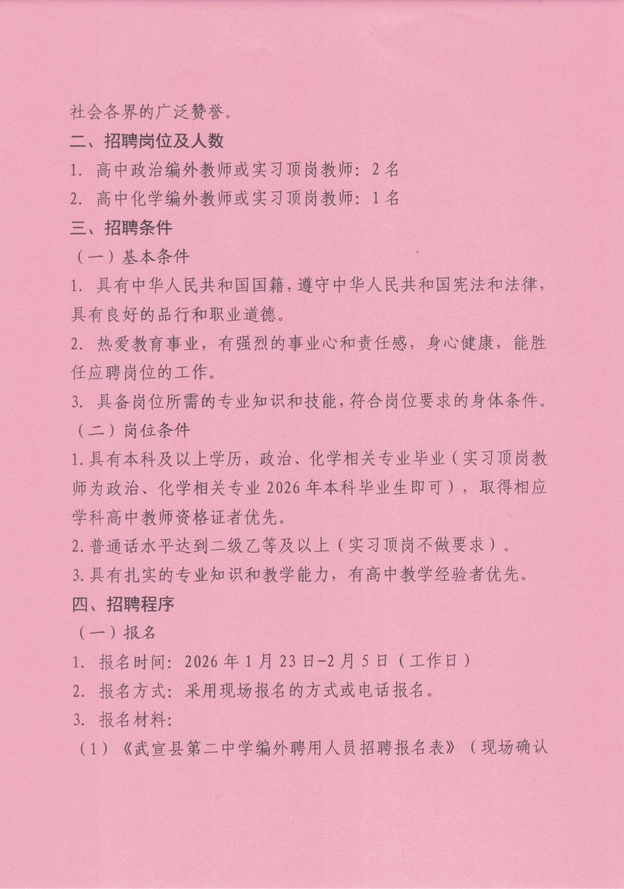 2026年來賓武宣縣第二中學(xué)編外(頂崗)教師招聘3人