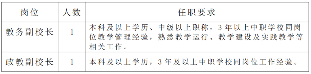(1)中級(jí)及以上職稱(chēng),具有教研組組長(zhǎng)等管理經(jīng)歷,具備專(zhuān)業(yè)建設(shè)組織領(lǐng)導(dǎo)與管理能力,碩士學(xué)歷的優(yōu)先;