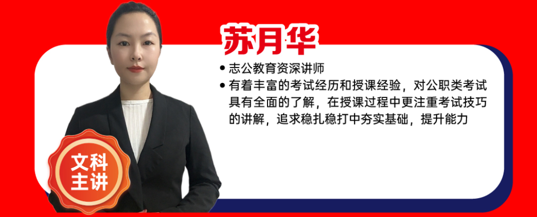 ?有著豐富的考試經(jīng)歷和授課經(jīng)驗(yàn),對(duì)公職類考試具有全面的了解,在授課過程中更注重考試技巧的講解,追求穩(wěn)扎穩(wěn)打中夯實(shí)基礎(chǔ),提升能力。